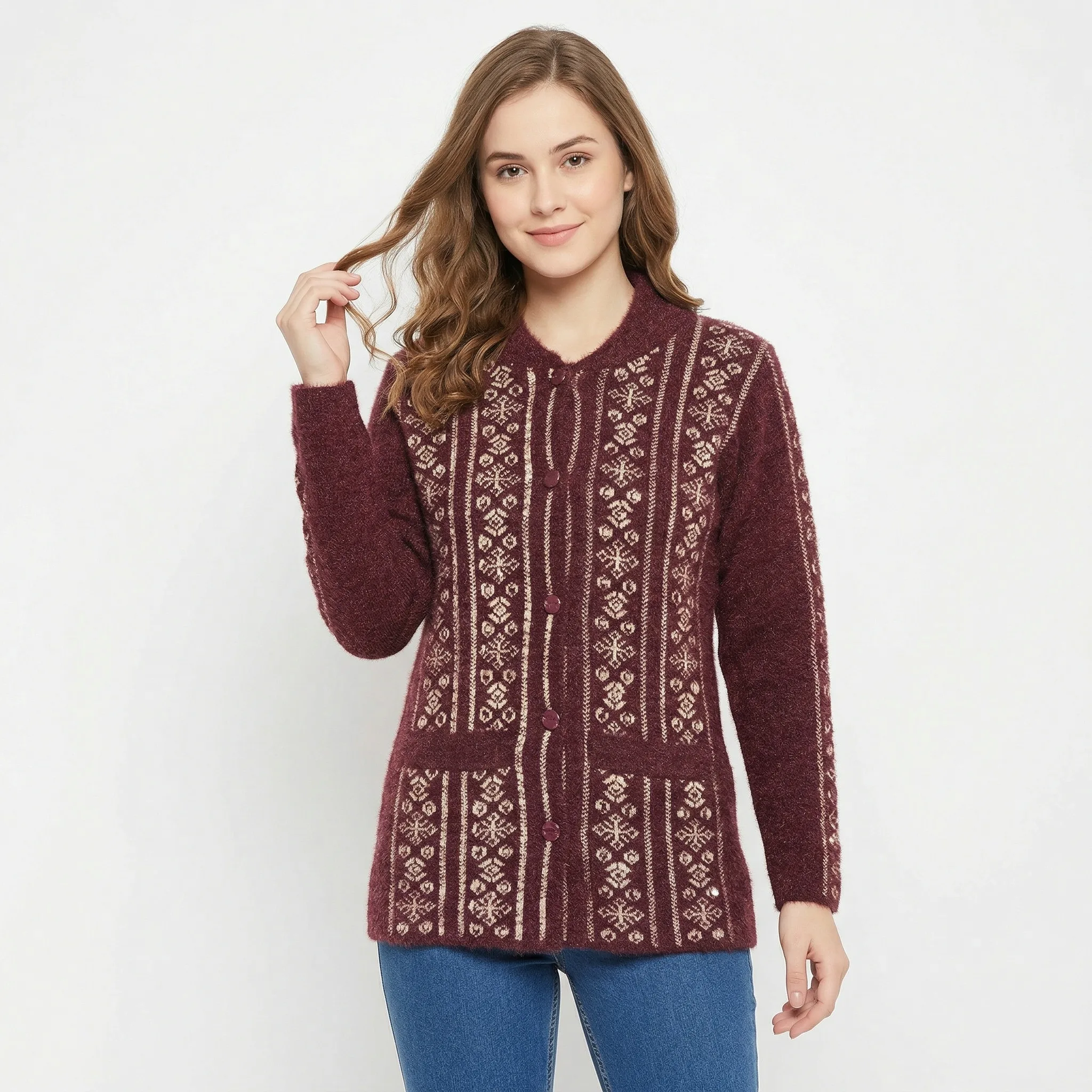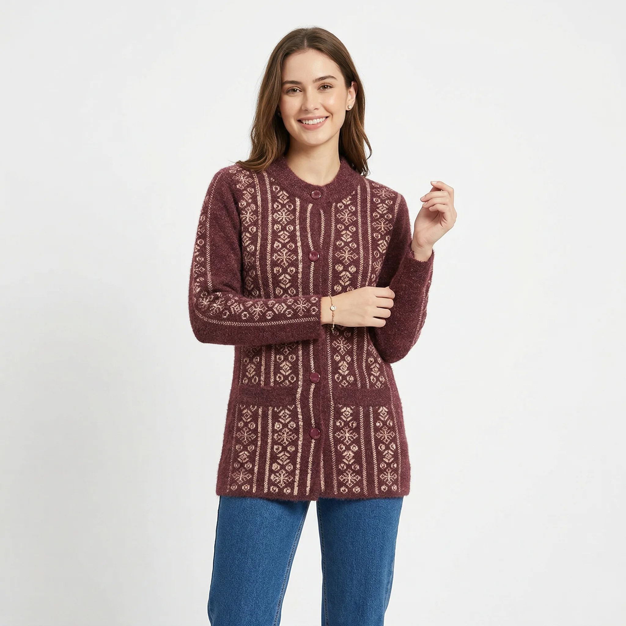Alpine Vertical Pattern Cardigan and sweater – Maroon