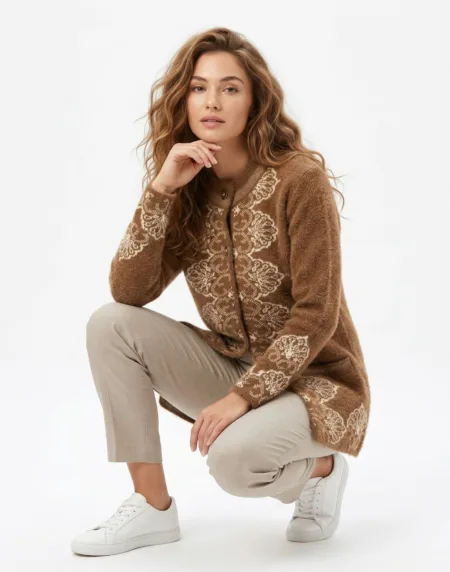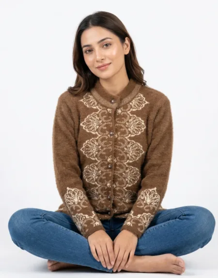 Heritage Pattern Soft Knit Cardigan and sweater – Maroon