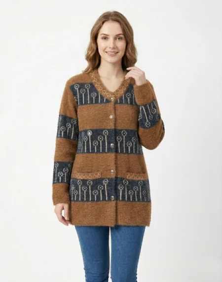 Alpine Vertical Pattern Cardigan and sweater – Maroon
