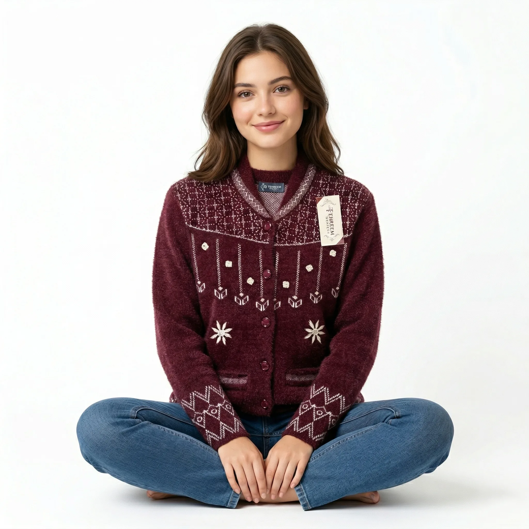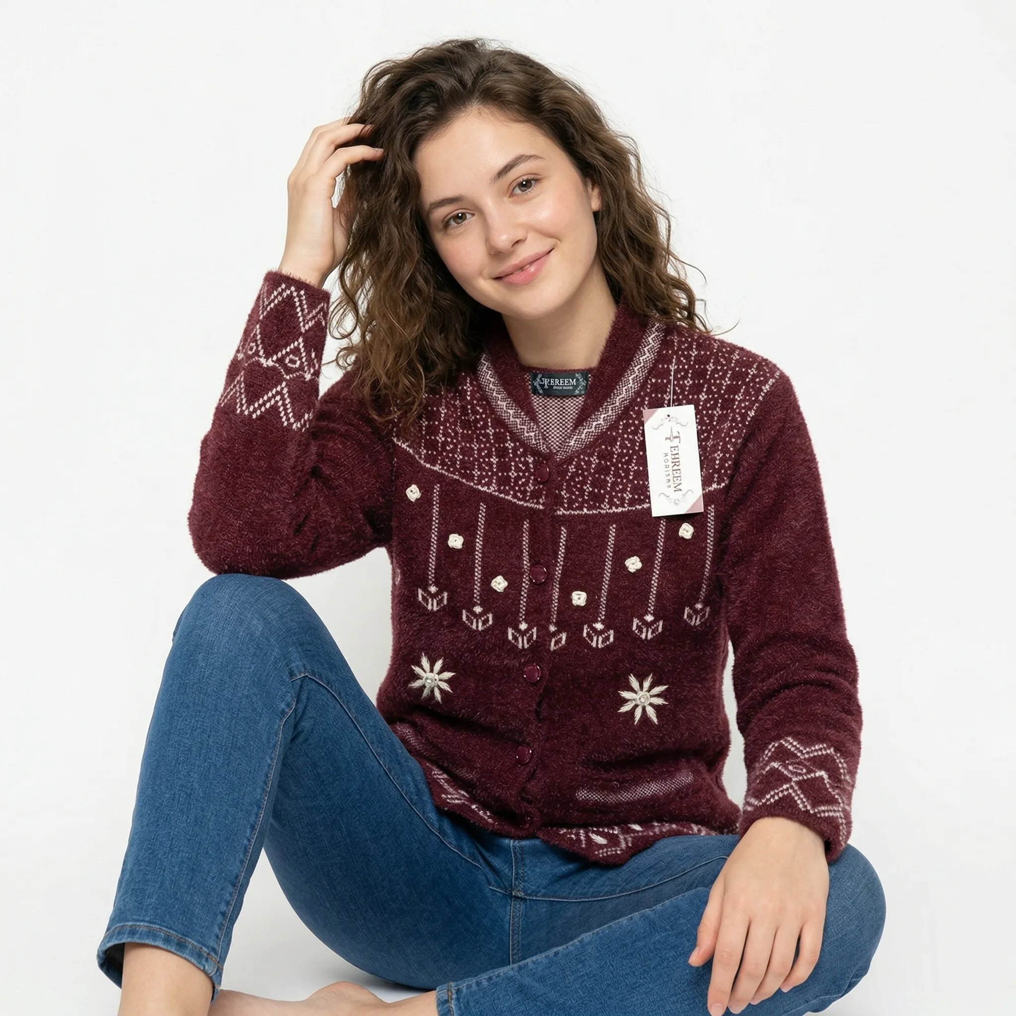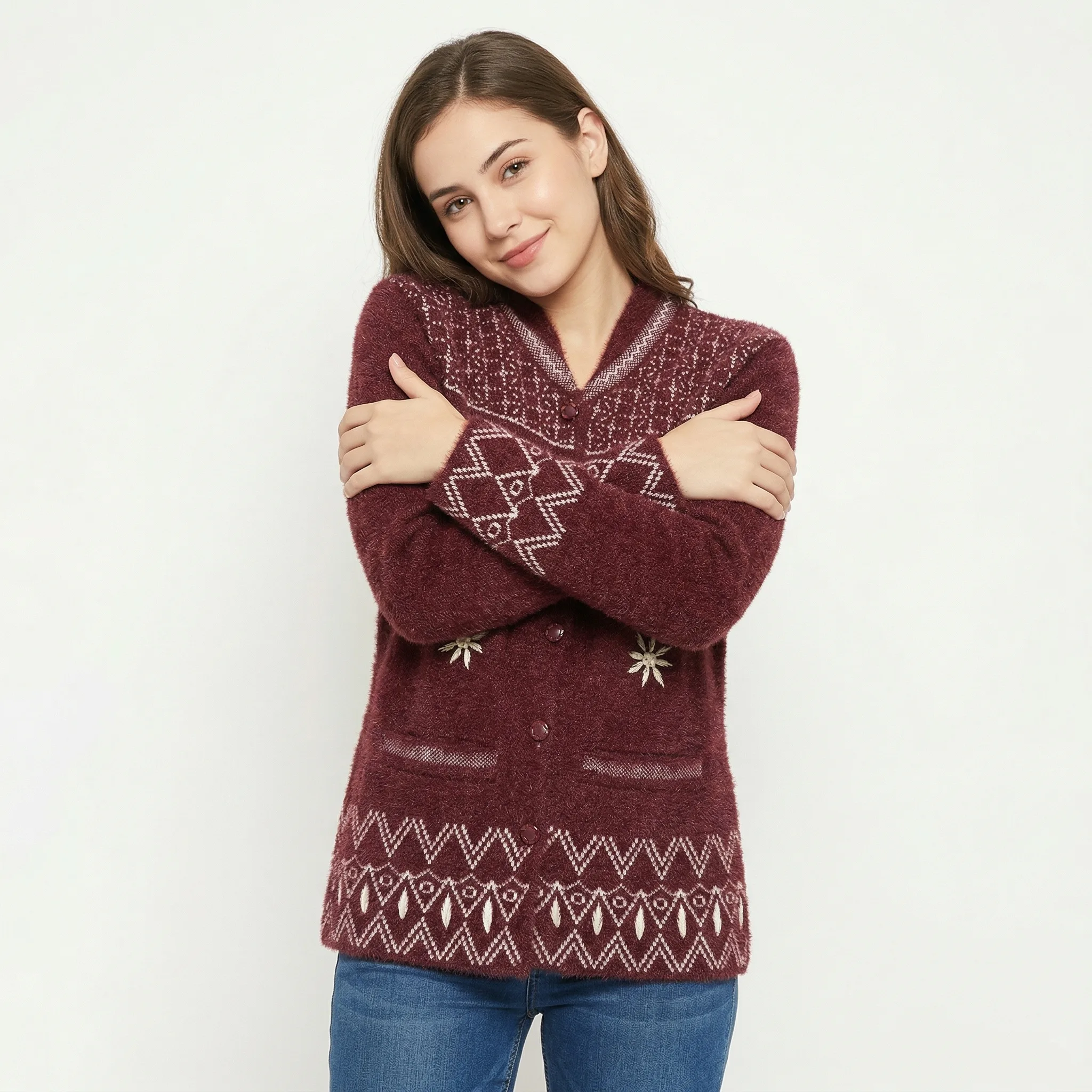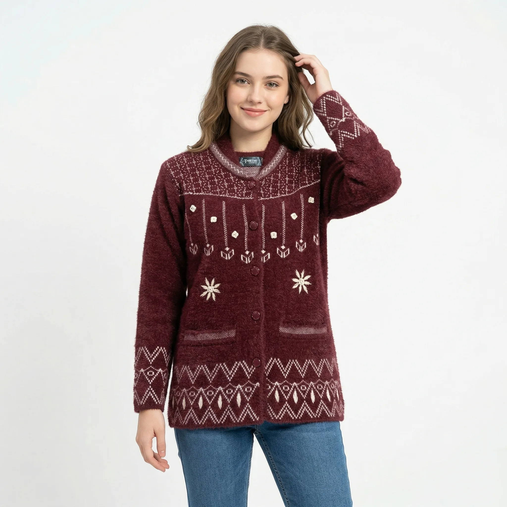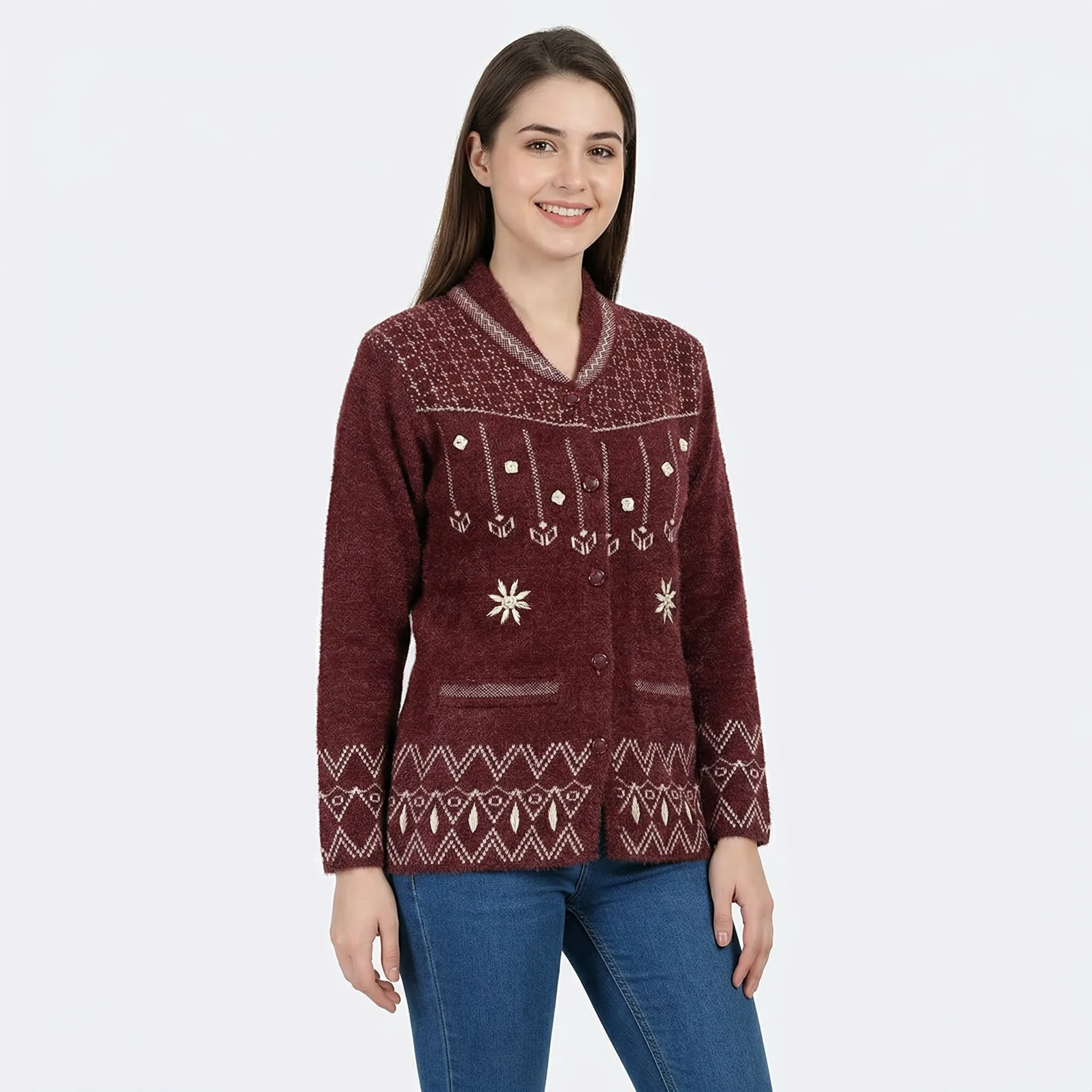Heritage Pattern Soft Knit Cardigan and sweater – Maroon